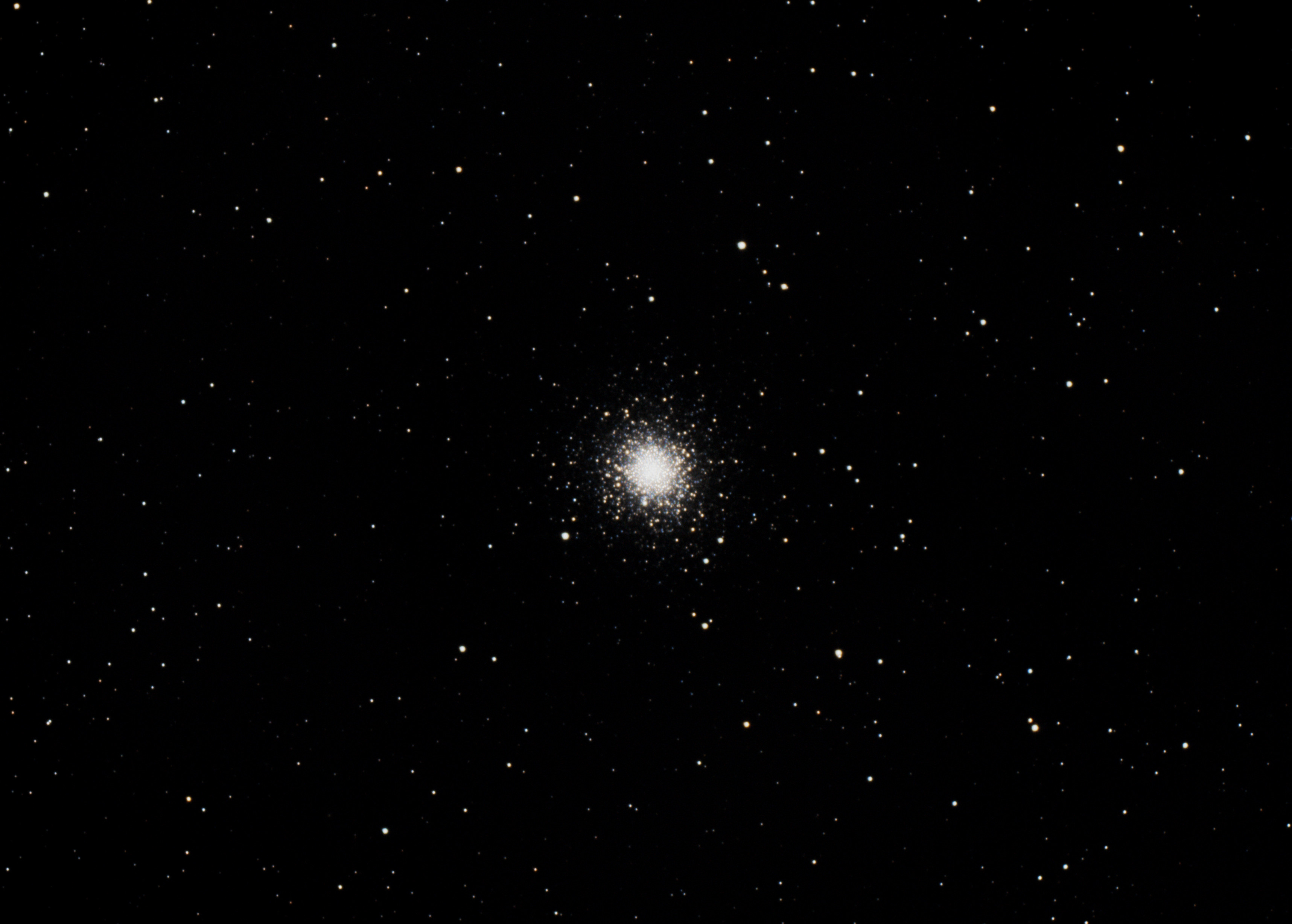 Aufgenommen habe ich Messier 2 am 22. September 2020 mit einem 8" F5 Newton Teleskop, dabei wurde mit einer Canon 70D 40 x 90 Sekunden belichtet bei ISO 800. Zudem wurden 100 Bias und 40 Darks gemacht. Das ganze wurde von einer HEQ 5 gehalten und nachgeführt.