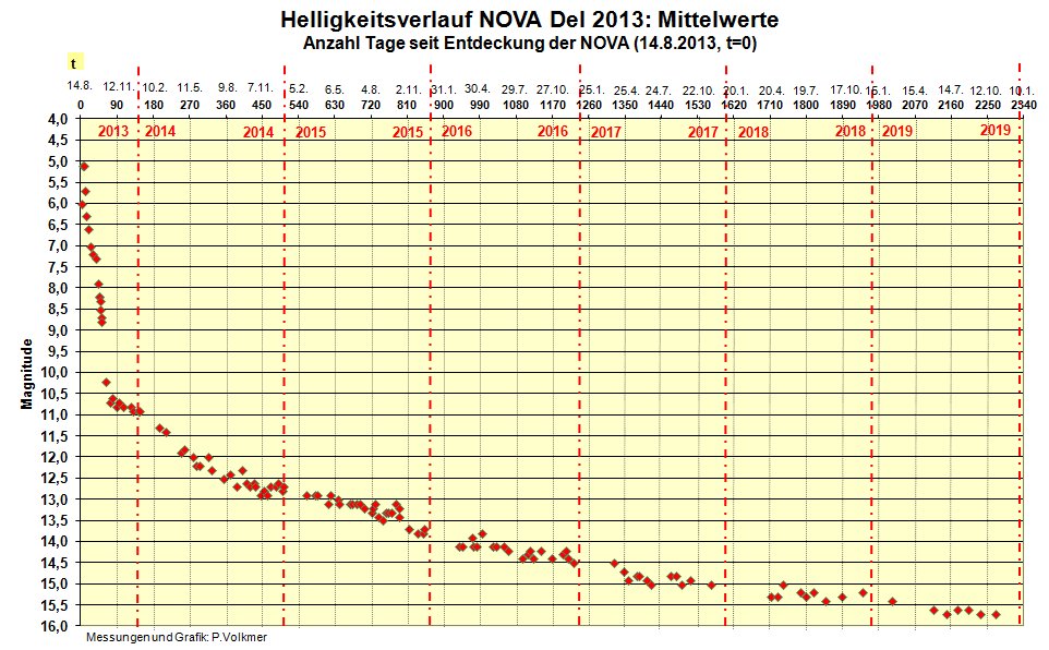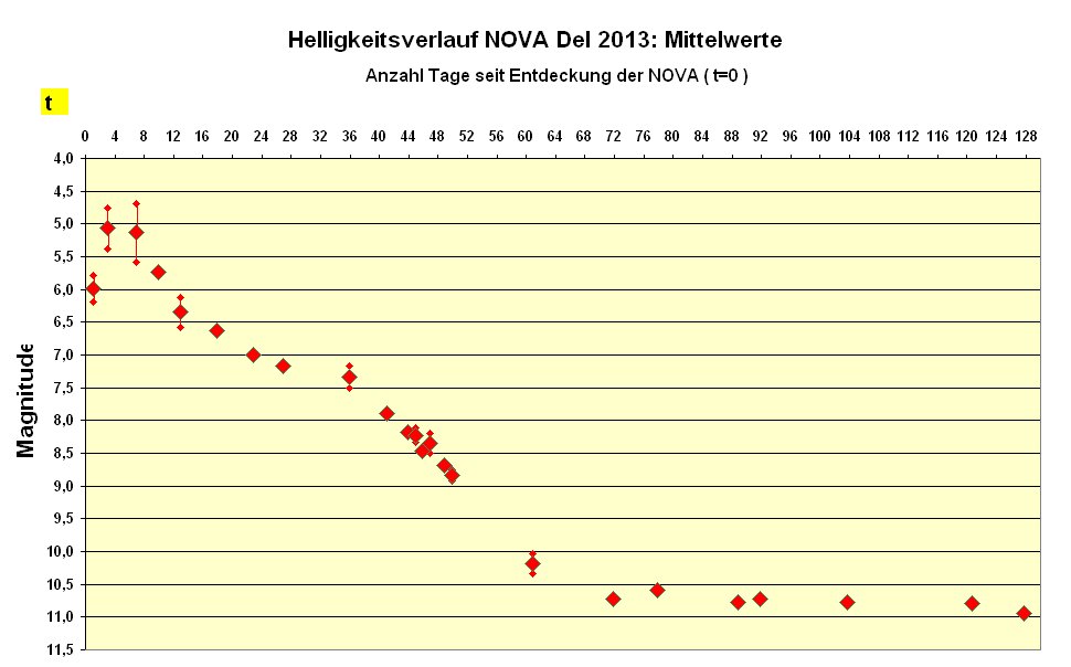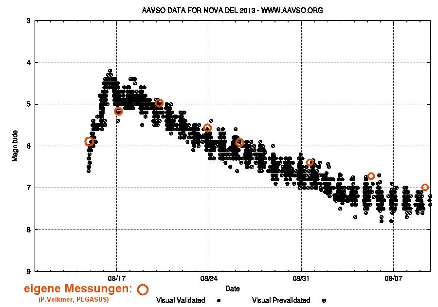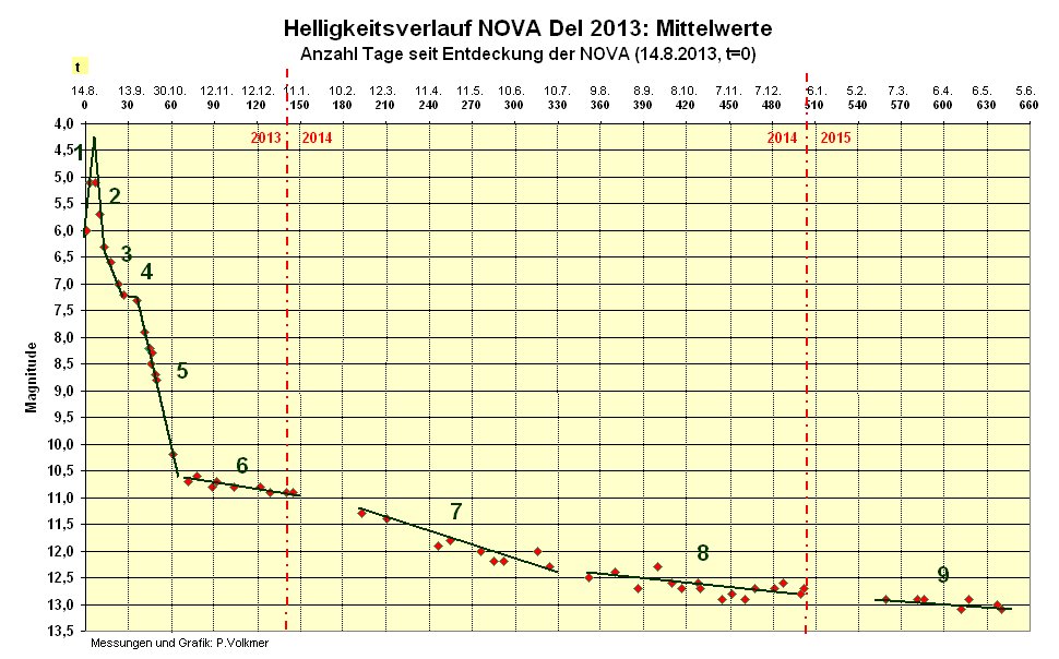 Eine ausführliche Behandlung der AAVSO-Ergebnisse ist hier zu finden: http://www.aavso.org/nova-delphini-2013-story-so-far