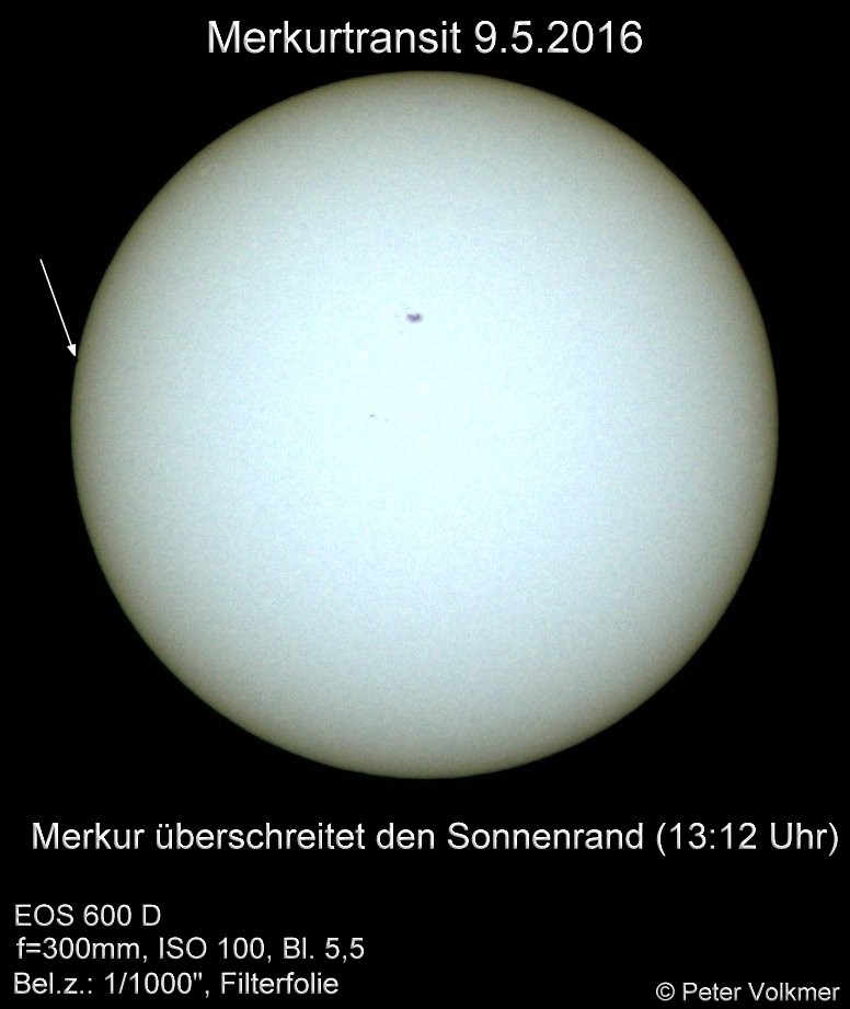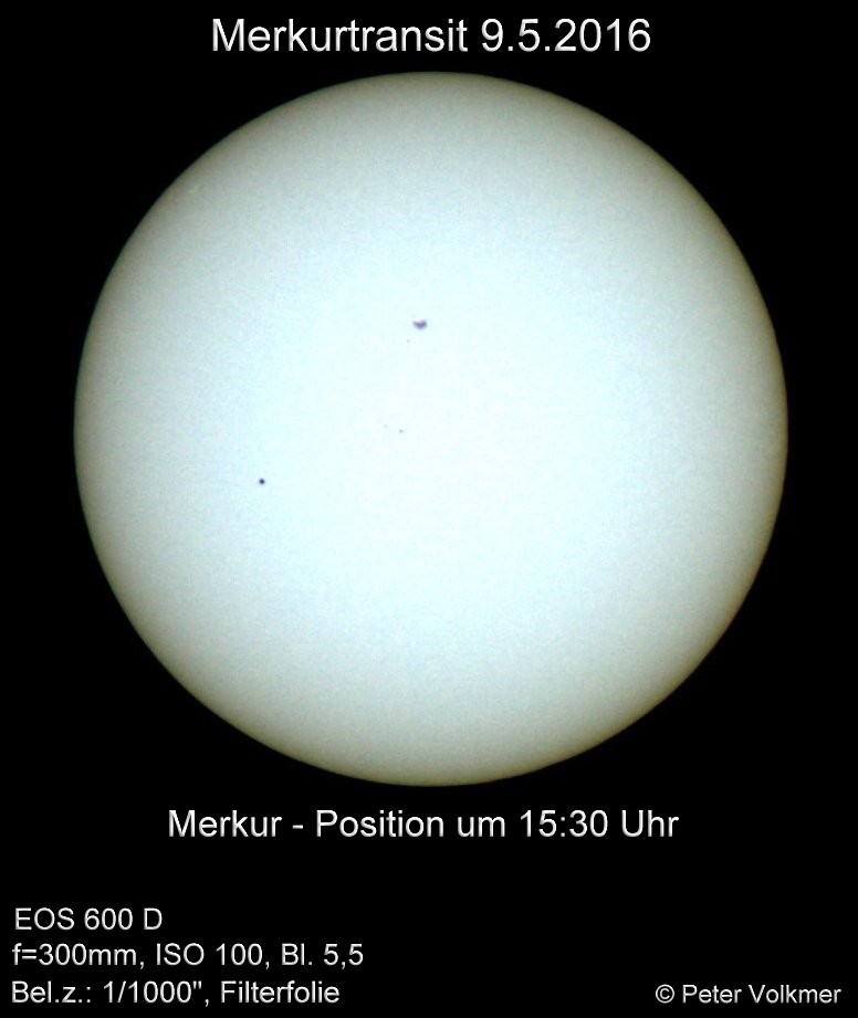 Der Merkurtransit konnte von P.Volkmer leider nur bis 15:31 Uhr fotografisch dokumentiert werden. Hier einige ausgewählte Einzelaufnahmen: